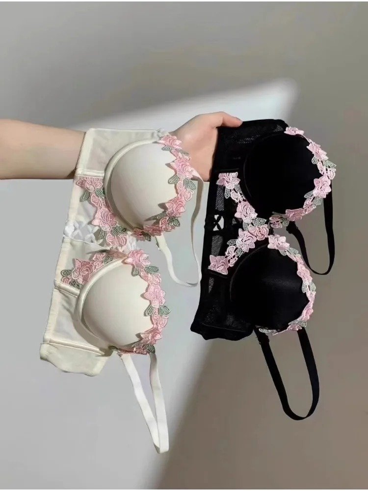Floral Embroidery Lingerie Set – Elegant Push Up Bra & Panty for Women