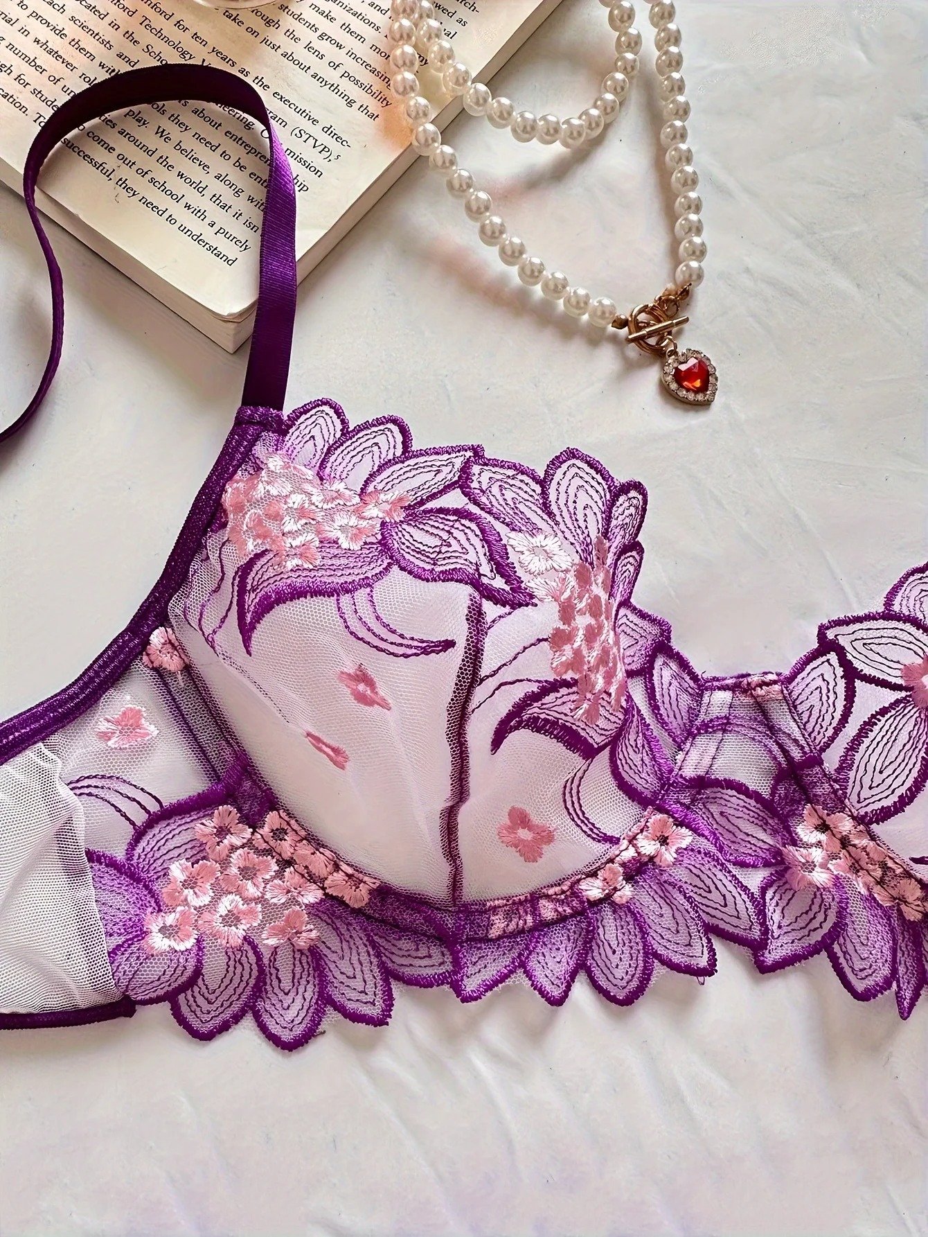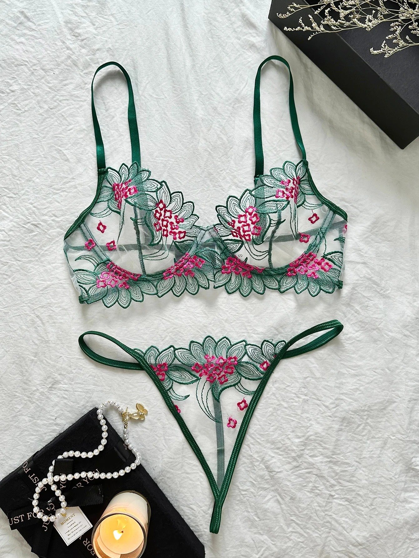 Luxury Floral Embroidered Lingerie Set – Sheer Bra & Panty for Women
