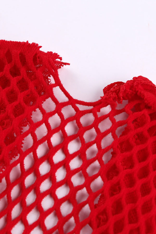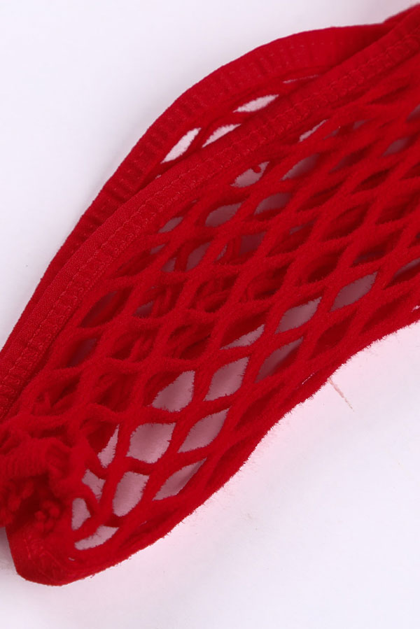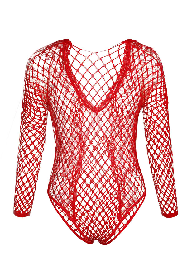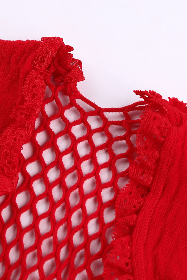 Red High Cut Deep-V Lace & Net Thong Back Teddy Lingerie