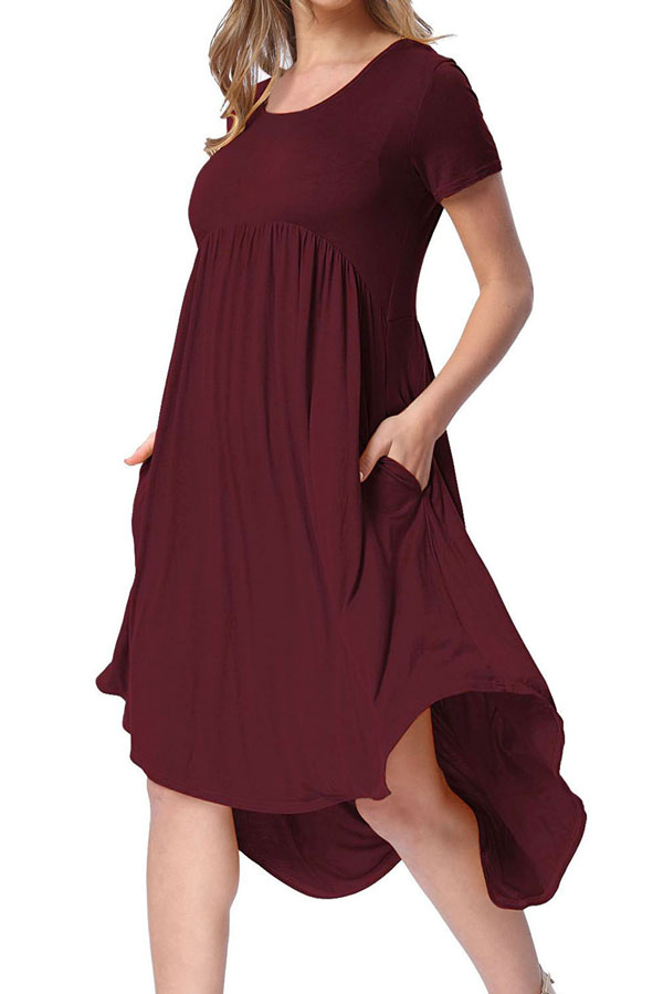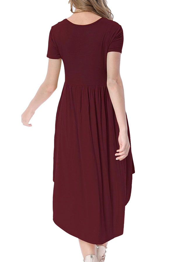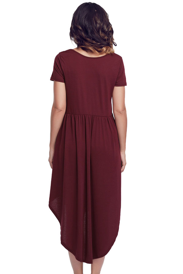 Rufous Short Sleeve High Low Pleated Casual Swing Dress
